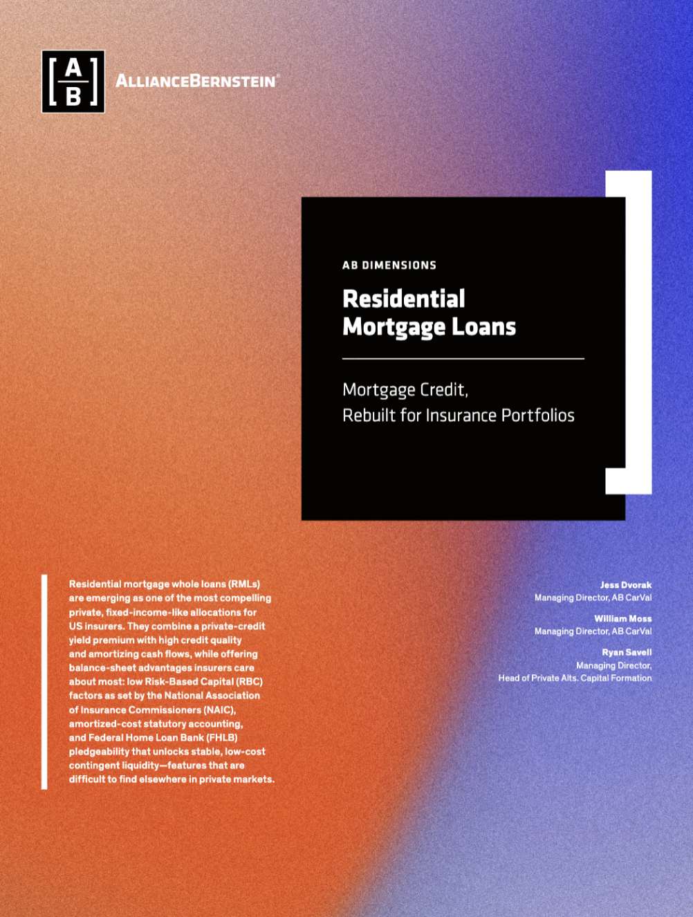 Residential mortgage loans offer insurers a potent combination. They have the potential to enhance income, diversify corporate-credit exposure and boost capital efficiency. They may also help bolster liquidity profiles.