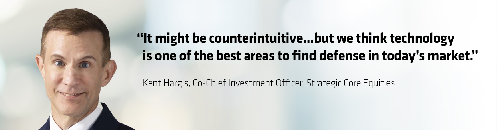 Kent: It might be counterintuitive, since my Strategic Core Equity Portfolios invest in low-volatility stocks, but we think technology is one of the best areas to find defense in today's market. The industry has many characteristics we've been discussing, such as strong pricing power, strong cash-flow generation and low leverage. These features work well in today’s environment. Within technology, we like companies that operate behind the scenes, which you might not see in the headlines. These types of companies tend to offer steady, compound growth potential. Examples include companies with mission-critical software or service or better data and analytics than rivals.