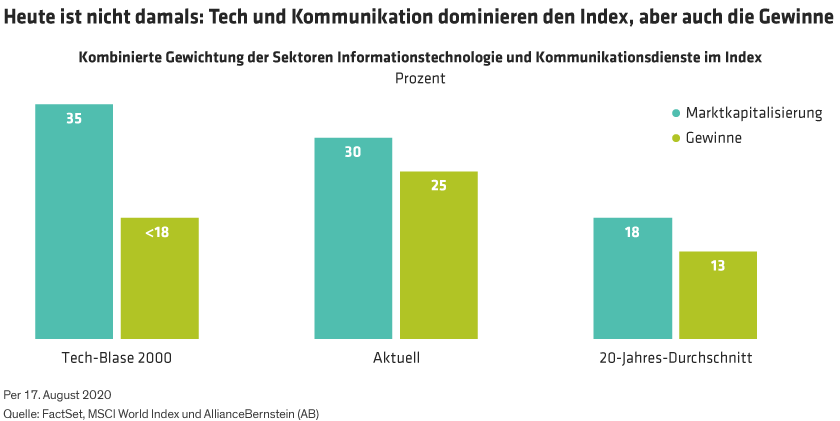 Unserer Ansicht nach spiegeln höhere Bewertungen die geringe Risikotoleranz der breiten Anlegerbasis wider. Heute werden Technologieunternehmen zu ähnlichen Bewertungen wie Basiskonsumgüter gehandelt und bieten gleichzeitig bessere Wachstumseigenschaften. So mögen beispielsweise Aktien von Einzelhändlern und Technologieunternehmen, die IT-Dienstleistungen und -Ausrüstungen vor Ort anbieten, billig aussehen, könnten aber bei anhaltender Pandemie und zunehmendem Gegenwind weiter fallen.