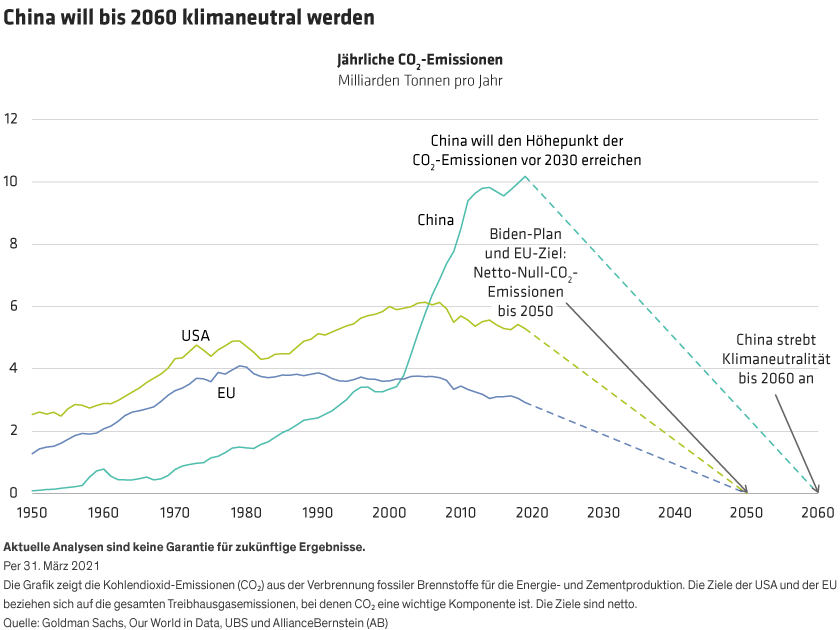 Chinas CO2-neutraler Plan für das Jahr 2060 befasst sich nicht nur mit dem Klimawandel, sondern zeigt auch auf subtile Weise, wie sich Peking die wirtschaftliche Zukunft des Landes vorstellt. Während die Bemühungen um ein nachhaltigeres Wachstum voranschreiten, wird der Übergang zu einer grüneren Wirtschaft vielfältige neue Anlagechancen schaffen.