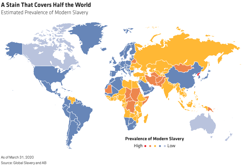 The key, from an investment perspective, lies in rigorous research—knowing what red flags to look for at a big-picture level (for example, the countries where a company does business or sources its supplies, and the nature of its business) and in close-up (how individual companies manage their supply chains and what policies they have in place for assessing and reducing modern slavery risk).