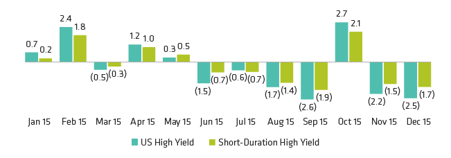 High yield represented by Barclays US Corporate High Yield, short duration high yield by Barclays US High Yield BB/B 1–5 Year.