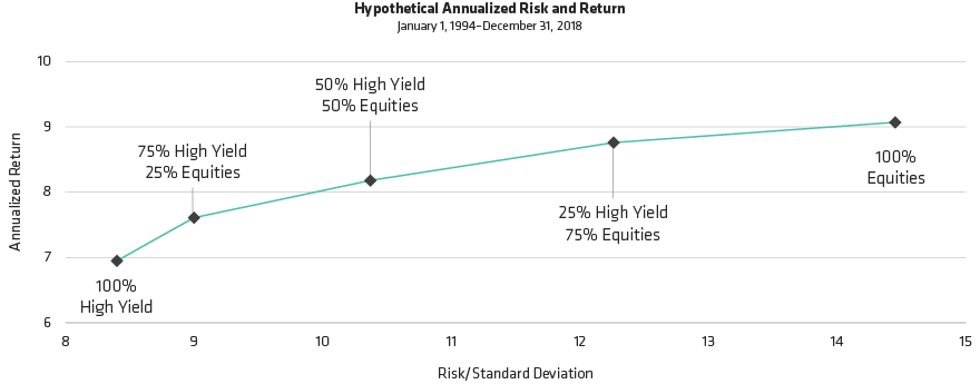 A Combination of High Yield* and Equities† Has Historically Improved Risk-Adjusted Returns