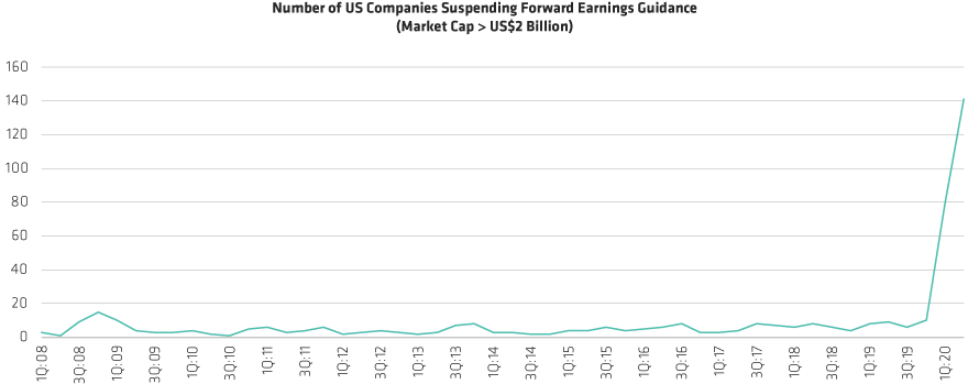 The COVID-19 shutdown has prompted an unprecedented number of US companies to suspend earnings guidance. Equity investors should focus fundamental research on a wider range of outcomes instead of the overly precise game of predicting short-term estimates—especially during a period of heightened uncertainty.