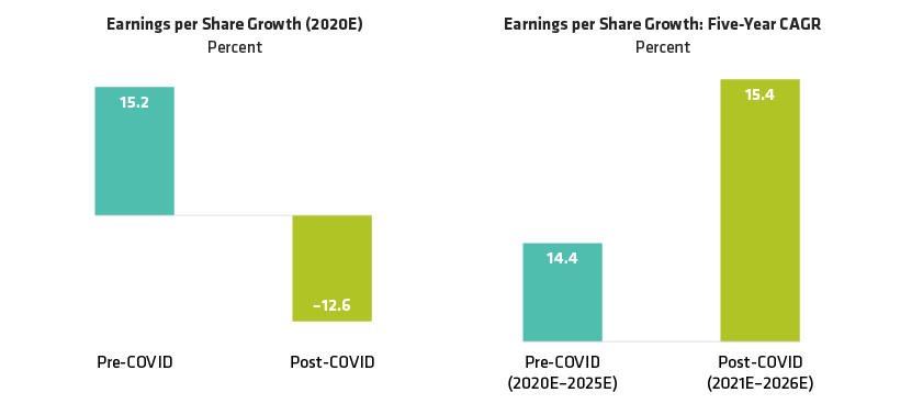 Based on the AB Concentrated Growth universe of quality, high-growth companies. CAGR is the compound annual growth rate. Post-COVID five-year CAGR begins with 2021E to avoid inflating the recovery forecasts from a very low base of the 2020 downturn.