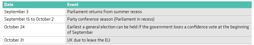 Much has changed since we wrote our last Brexit update in May: the UK has a new prime minister (Boris Johnson) and a new cabinet full of Conservative members of parliament (MPs) determined to leave the EU whatever the cost. But much remains the same: Brexit is no less complicated, the government is still weak and divided, Parliament is still against a no-deal exit and the EU is still opposed to reopening the withdrawal agreement reached with Theresa May.
