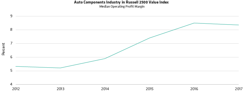 Take the auto-parts industry, where consolidation has left companies better positioned to manage supply and pass through rising costs. Small- and mid-cap auto-parts manufacturers have moved up the value chain in recent years because the increased complexity of auto parts has made their niche products indispensable to major auto manufacturers.