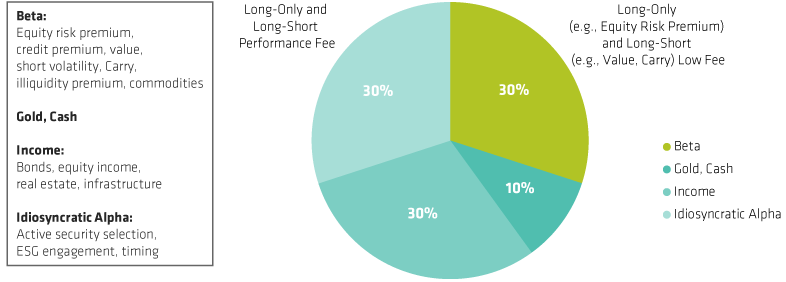 There are several advantages to considering asset allocation in terms of return types. We suggest that this approach represents a more logical and fundamental way to differentiate sources of return, allowing for a more structured approach to fee allocation, with lower fees for betas and possibly performance fees for idiosyncratic alpha.