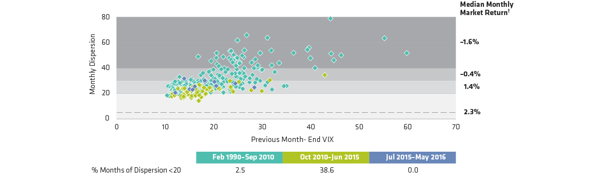 Monthly Stock Dispersion* vs. Level of VIX (Percent)