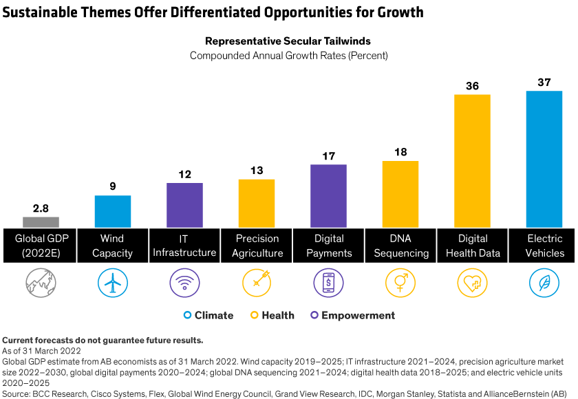 Nos portefeuilles Sustainable Thematic Equity quantifient les facteurs ESG de façon indépendante, au niveau de chaque entreprise. Nous menons nos propres recherches afin d’estimer le potentiel de rendement à cinq ans, tout en identifiant et en quantifiant les risques, et en intégrant les facteurs ESG importants à chaque étape du processus d’investissement.