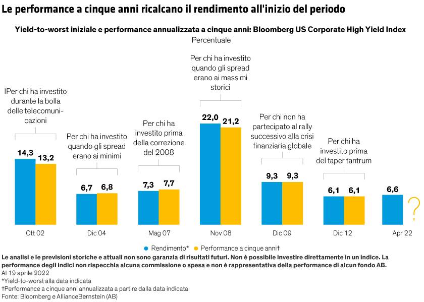 Le obbligazioni high yield hanno una reputazione di volatilità. La storia insegna tuttavia che lo yield-to-worst del segmento high yield statunitense è un indicatore attendibile delle sue performance nei cinque anni successivi.
