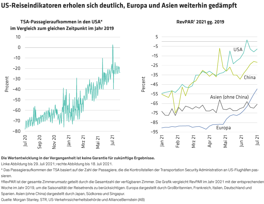 Wie lassen sich diese datengestützten Erkenntnisse nun in Portfolioaktivitäten umsetzen? Kreuzfahrtunternehmen, Fluggesellschaften und Hotels scheinen der offensichtliche Weg zu sein, um in eine Erholung der Reisebranche zu investieren. Aber diese Unternehmen sind nicht nur potenziell lukrativer, sondern auch riskanter; wenn nach Delta eine neue Variante auftaucht, würde die Erholung wieder hinausgeschoben werden und „reine“ Reiseaktien würden einen Rückschlag erleiden.