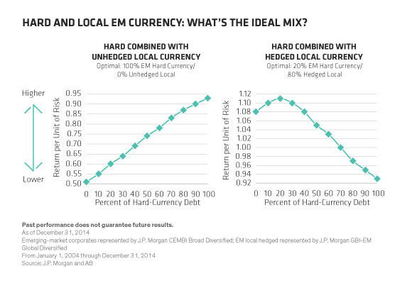 Many investors in emerging markets want a portfolio that blends “hard currency” (US dollar–denominated) and local-currency emerging-market debt. Typically, the benchmark is a 50/50 mix. But is that really the ideal blend?