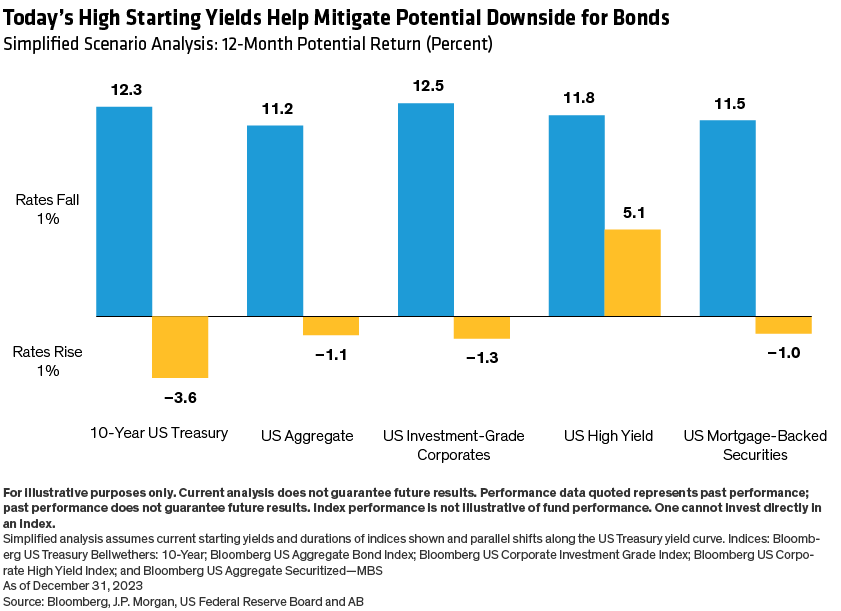 If the Fed cuts rates as widely expected, bonds appear likely to outpace cash this year. If yields rise instead, which is much less likely, bonds still seem to be in a good position, because high starting yields may help cushion against losses.