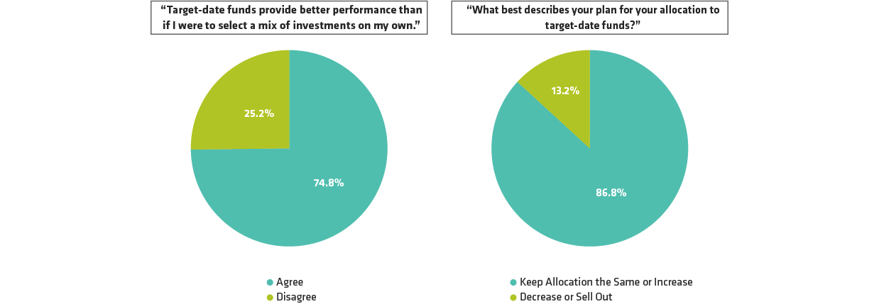 AllianceBernstein’s research backed up the commitment to target-date funds. We’ve been surveying DC plan participants for more than a decade, and when we reached out to them shortly after the financial crisis, most target-date-fund investors still favored these solutions (Display).